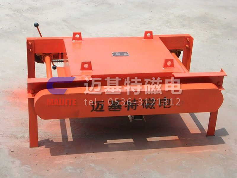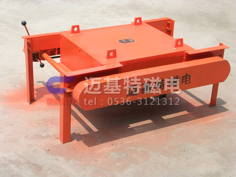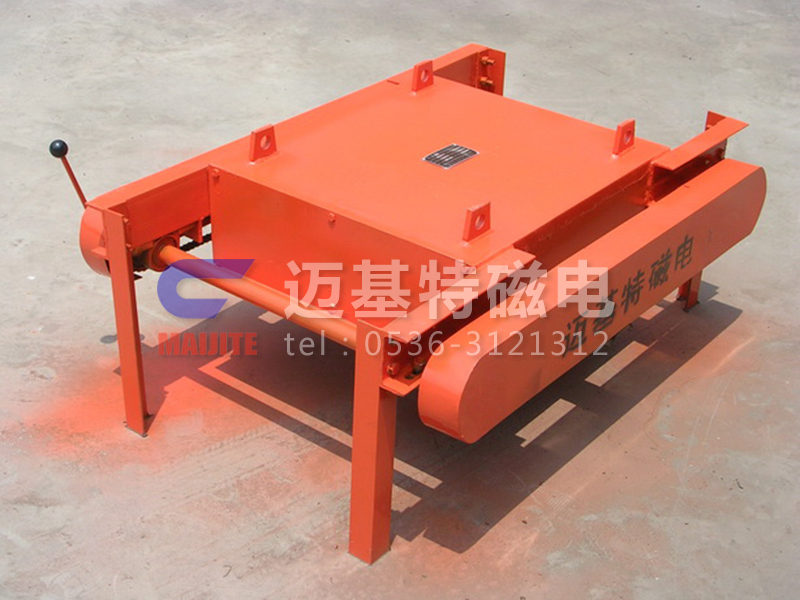 RCYP系列手動缷鐵式永磁除鐵器是采用高性能強磁材料作勵磁的永磁除鐵器基礎上增添了鏈條、刮板、 手柄等缷鐵裝置,通過手搖作動力帶動鏈條上刮板將吸附在除鐵器上的鐵磁性物質刮出,這樣省去了人工用手清理鐵塊的麻煩。產品具有磁場強、吸力大、無需電能、安裝使用方便等特點。